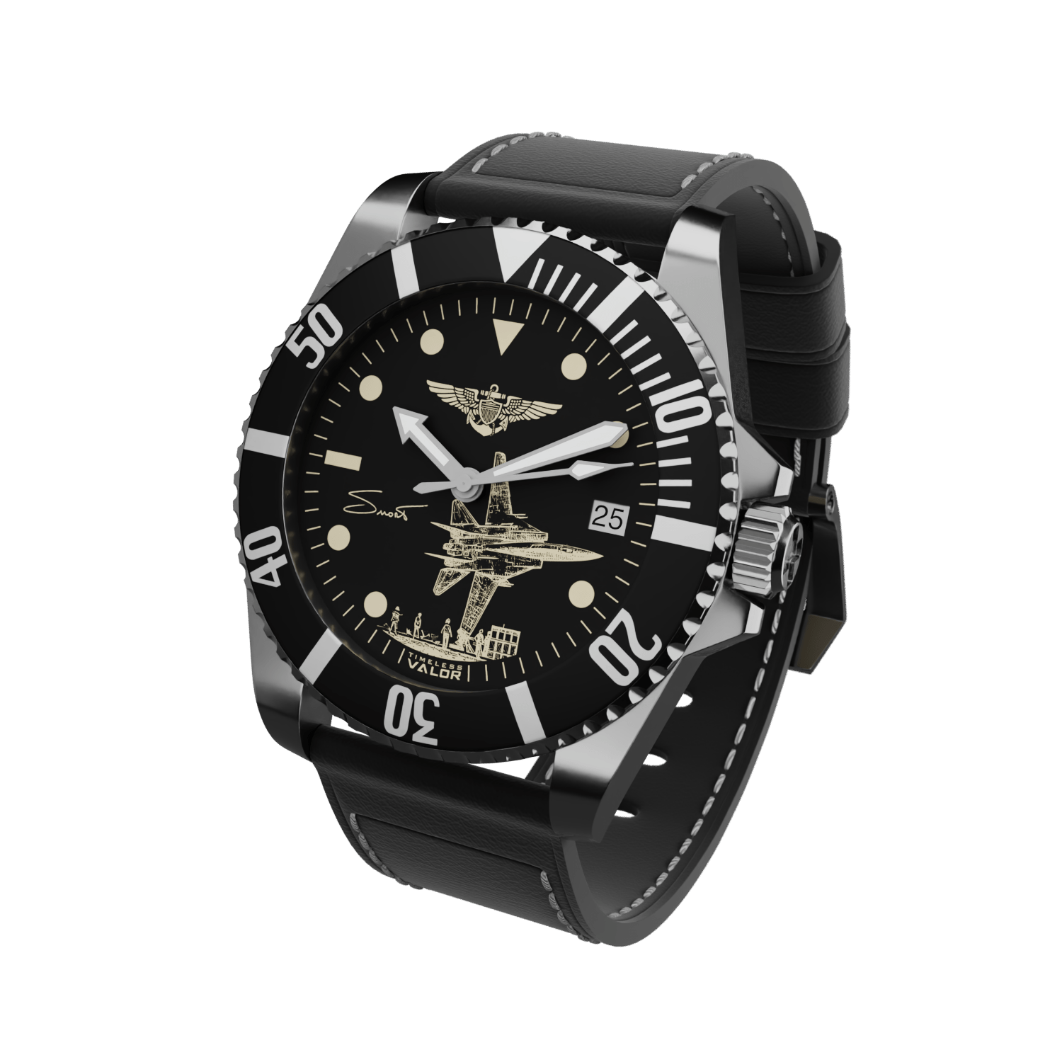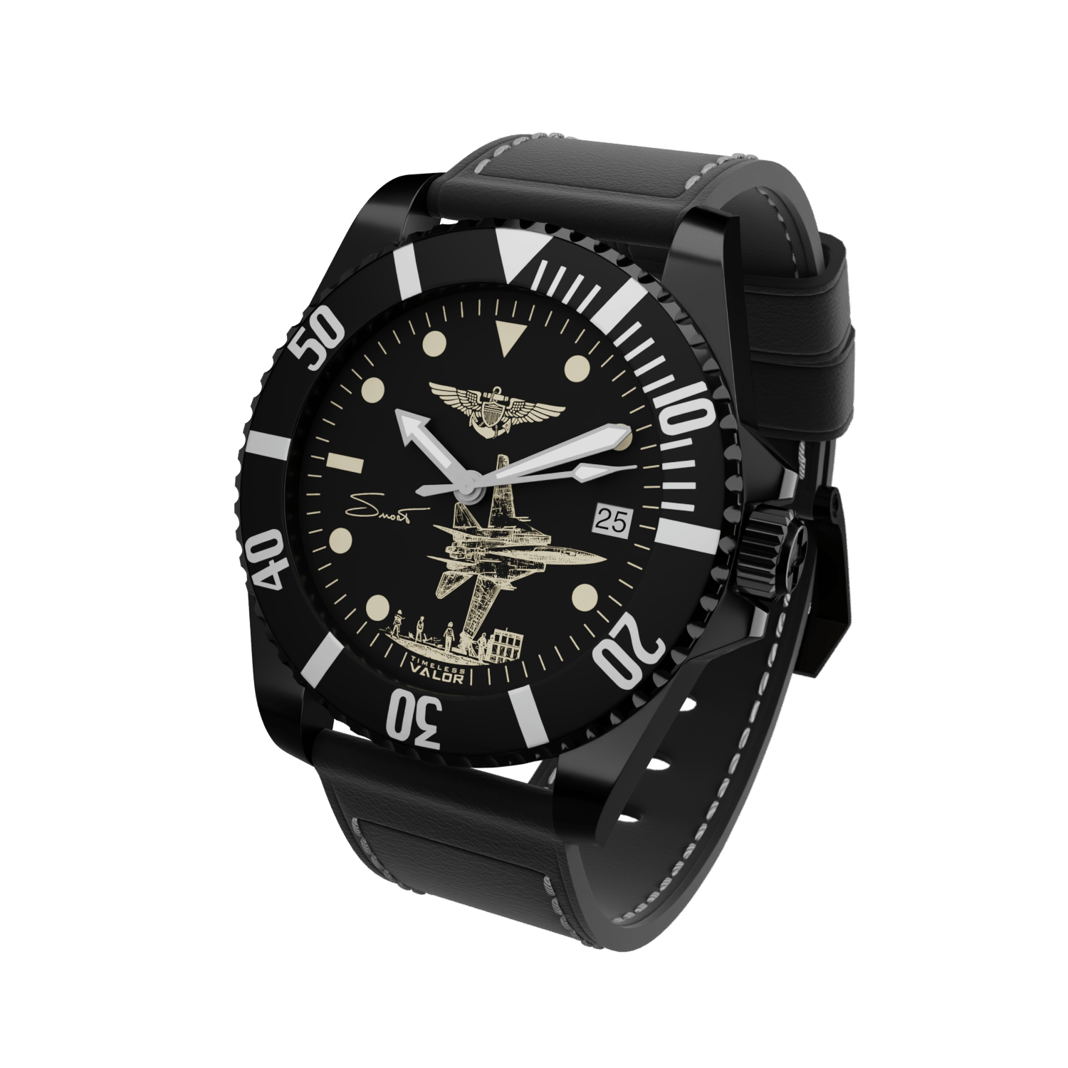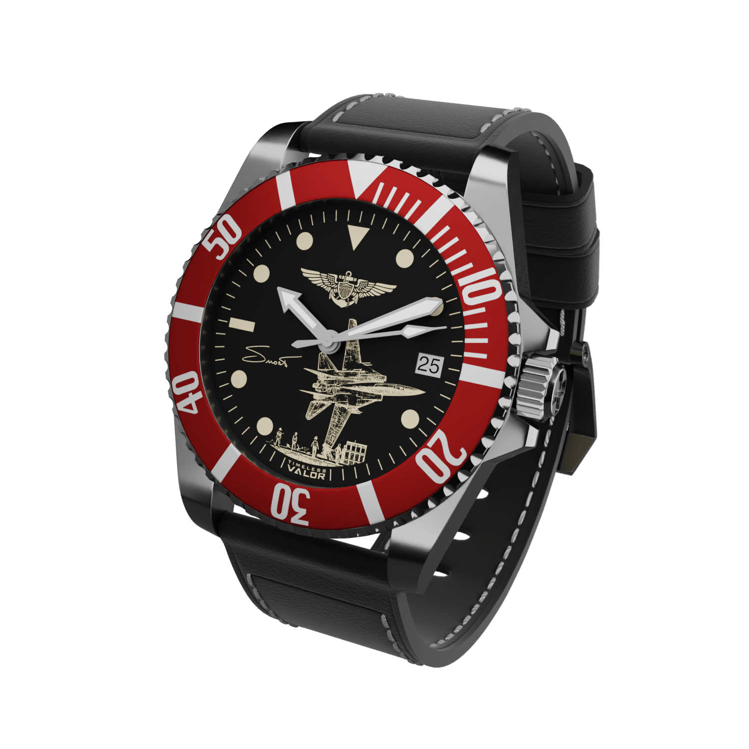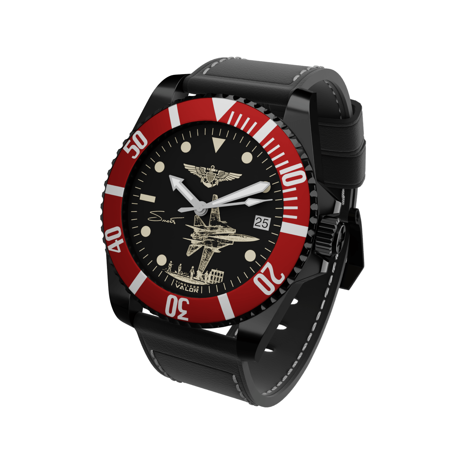 With the endorsement of his family, this timepiece captures the spirit and legacy of the legendary F-14 pilot, Captain Dale "SNORT" Snodgrass.