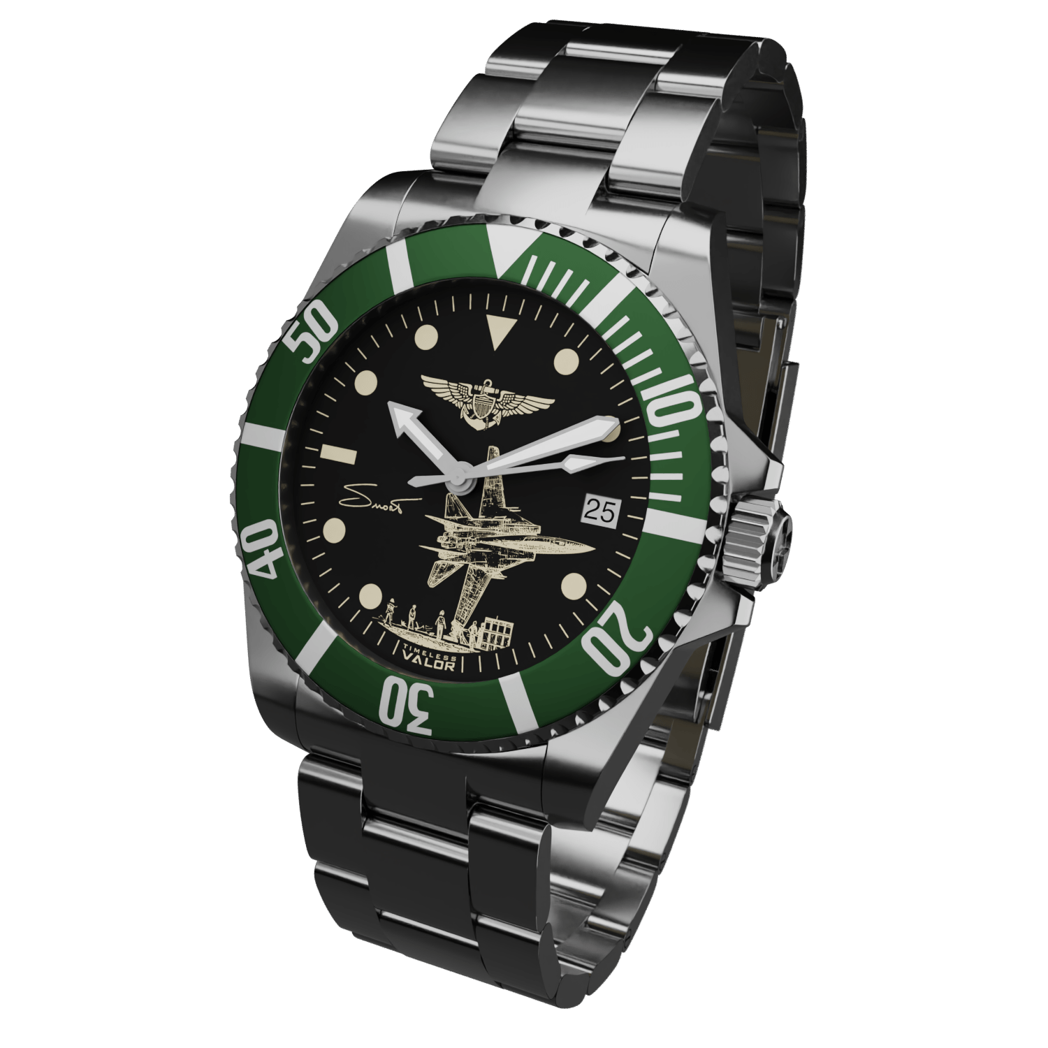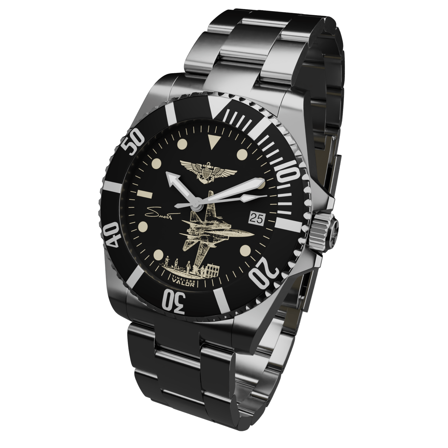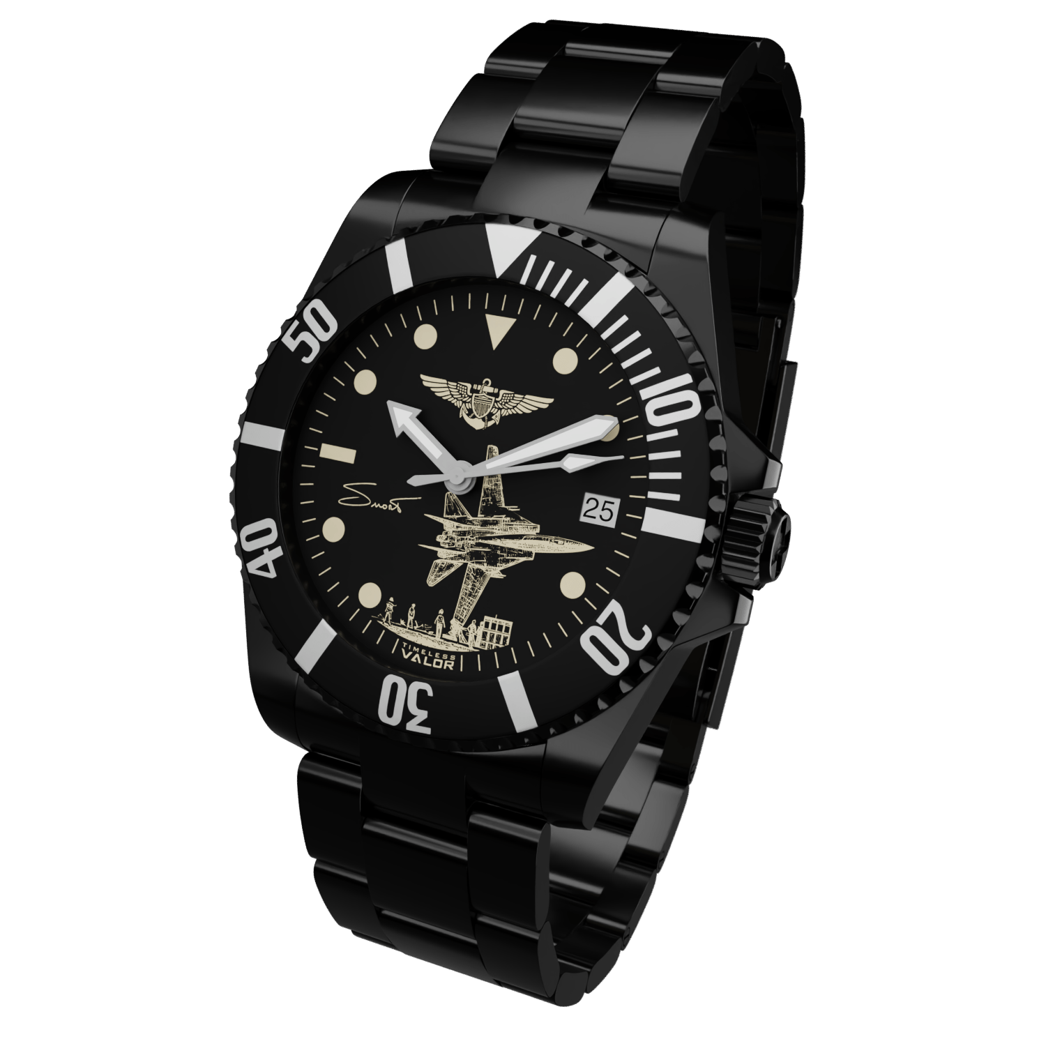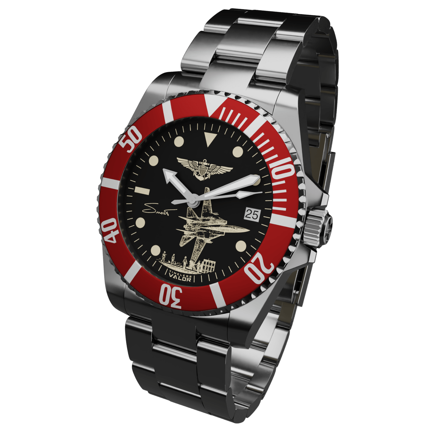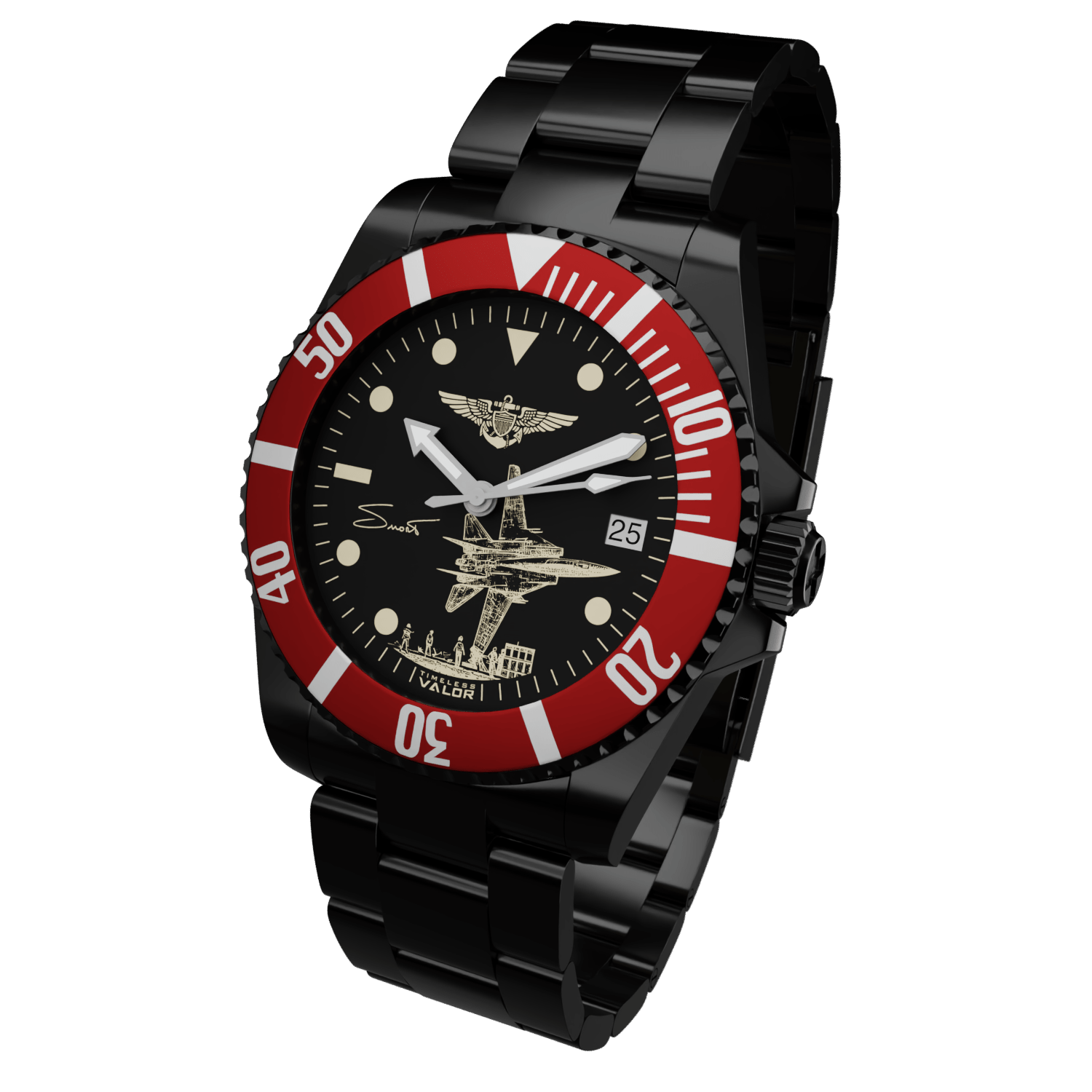 With the endorsement of his family, this timepiece captures the spirit and legacy of the legendary F-14 pilot, Captain Dale "SNORT" Snodgrass.