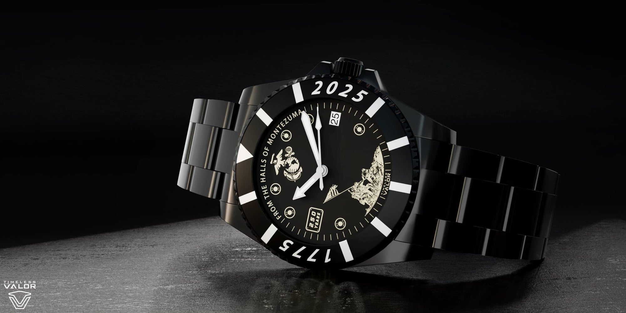 The famous Rosenthal image is captured on the watch face in addition to the celebration of 250 years of service.The primary weapon used during the battle was the M-1 Garand battle rifle.